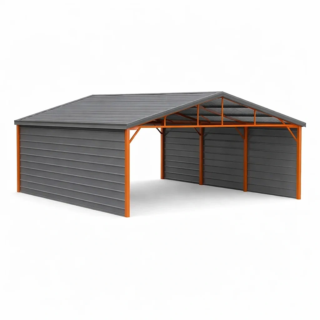 Abri de voiture acier orange et gris